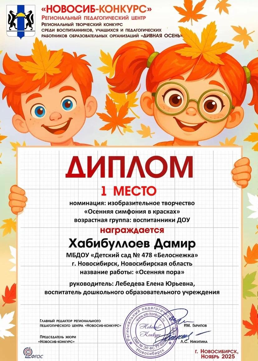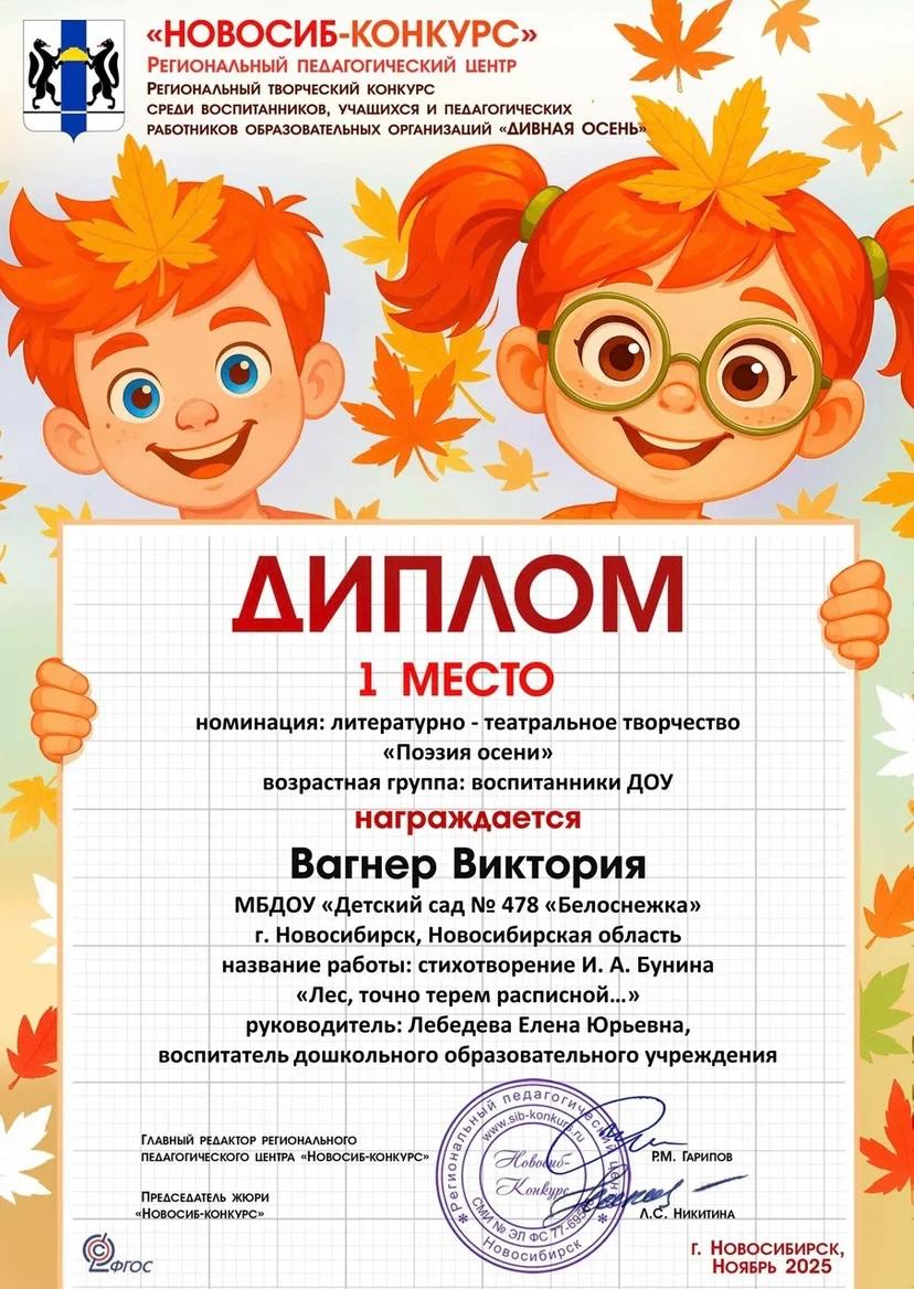 Диплом 1 место в региональном конкурсе "Дивная осень" 17.11.2025