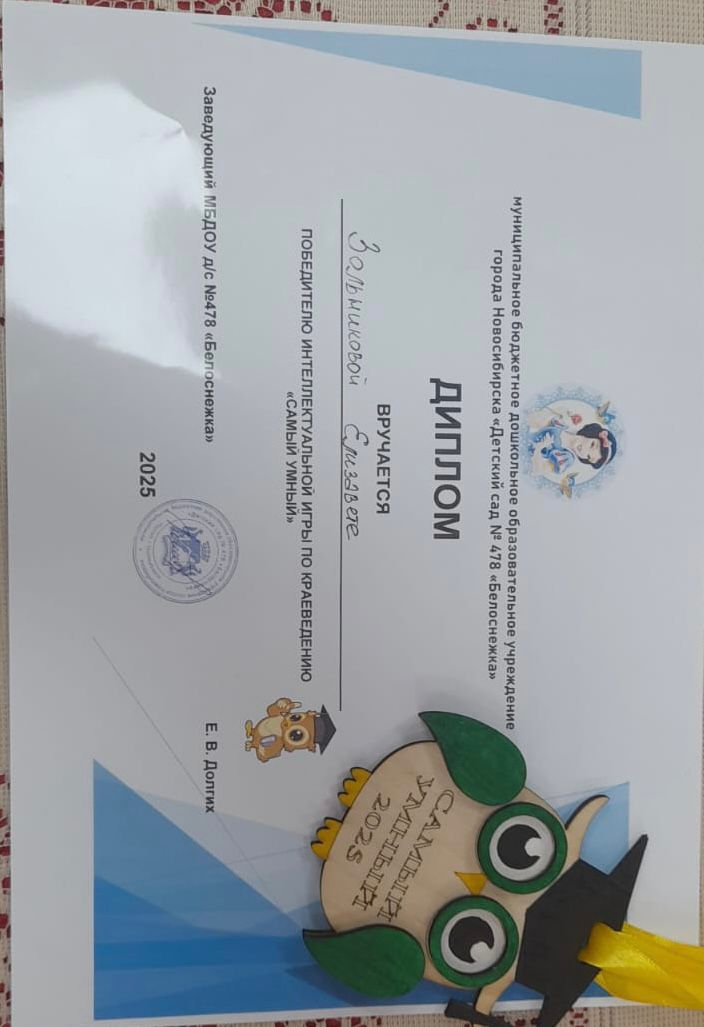 Диплом победителя в интеллектуальной игре "Самый умный" 31.10.2025